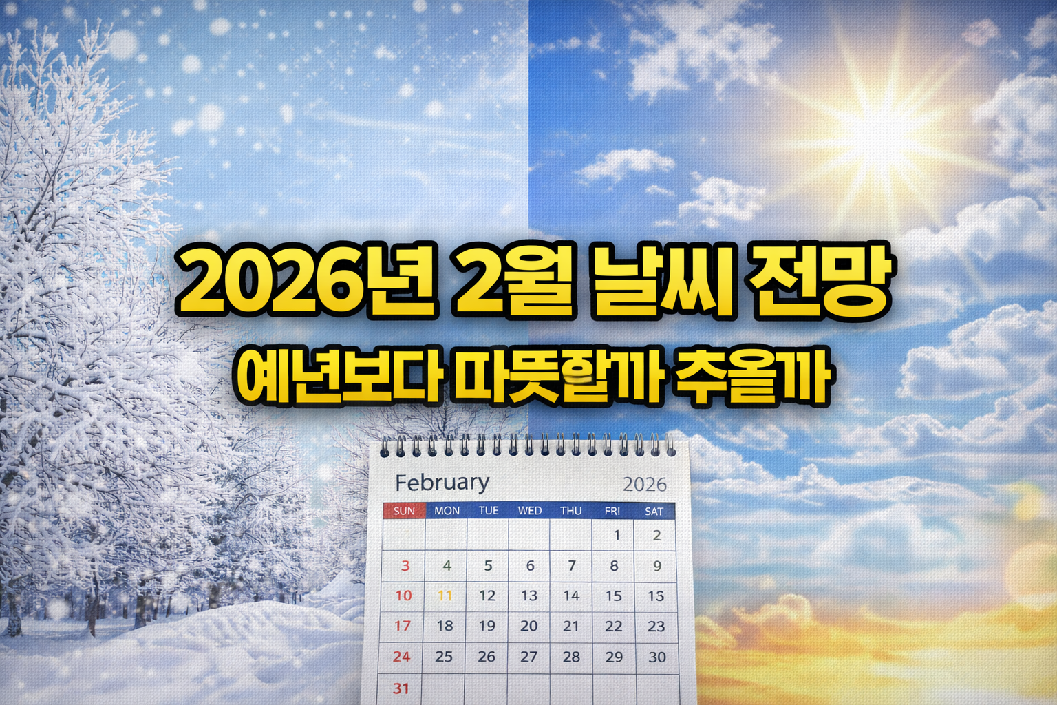 해마다 2월이 다가오면 “올해 겨울은 언제까지 추울까” “눈은 많이 올까” 같은 궁금증이 생기기 마련입니다. 특히 여행, 이사, 야외 일정처럼 날씨 영향을 크게 받는 계획이 있다면 미리 날씨 흐름을 알고 싶어지는 시기이기도 합니다. 이번 글에서는 2026년 2월 날씨 전망을 중심으로, 기온과 강수(눈·비) 흐름을 일반인이 이해하기 쉽게 차분하게 정리해보겠습니다.